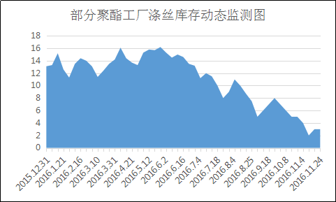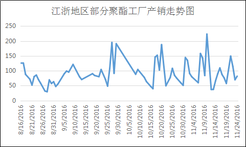 库存方面,本周涤纶长丝库存依然处于偏低水平,一些厂家畅销规格无库存,甚至预售一周。与上周相比,本周库存整体变化不大。具体产品方面,目前涤丝市场整体库存略升至3-7天附近;其中POY库存围绕在2-5天附近,FDY库存则升至4-7天附近,而DTY库存则至9-19天左右。